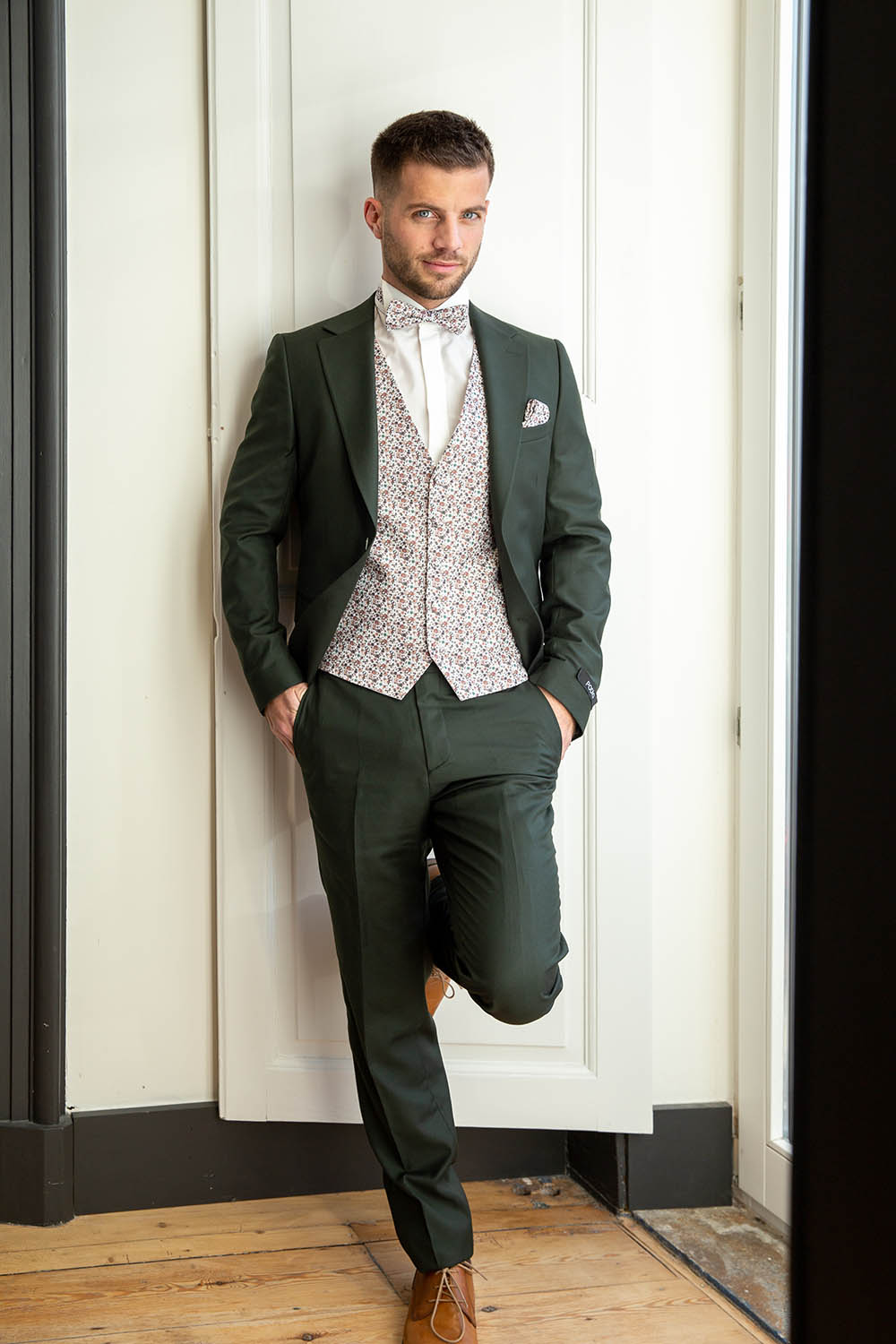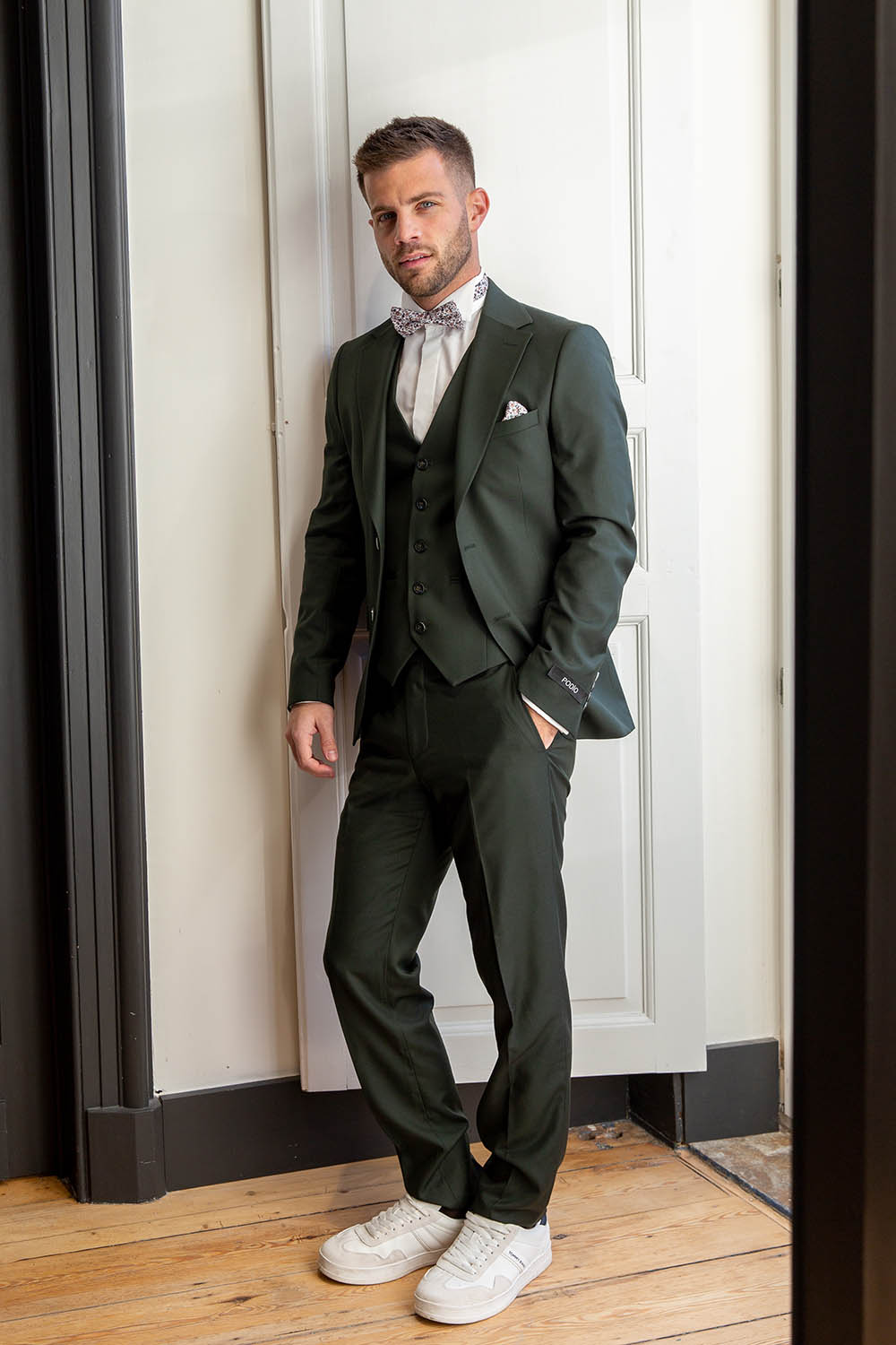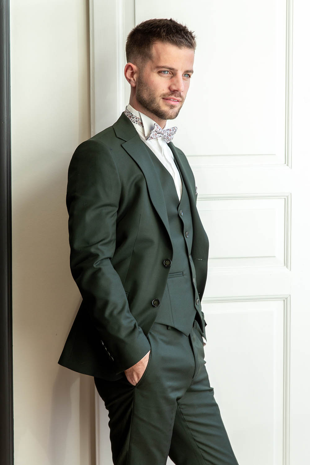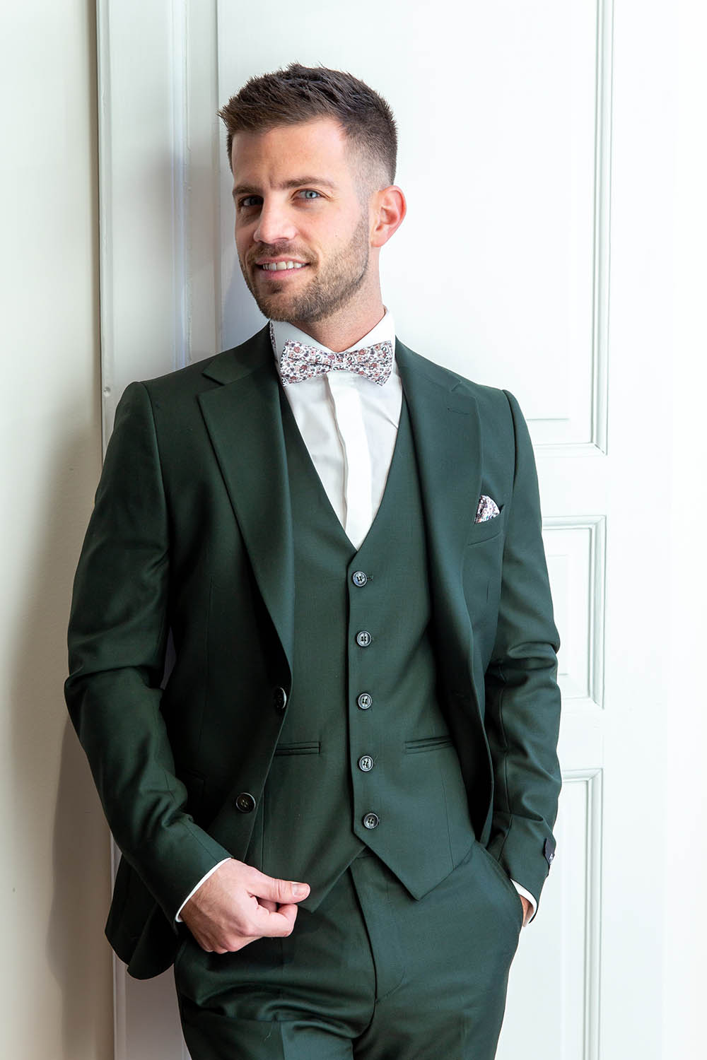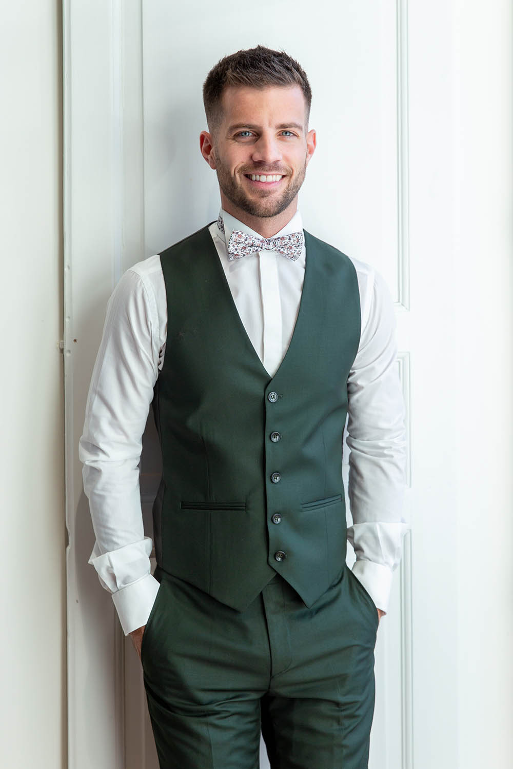 Vous pouvez aussi l’assortir avec un gilet et nœud fleuri